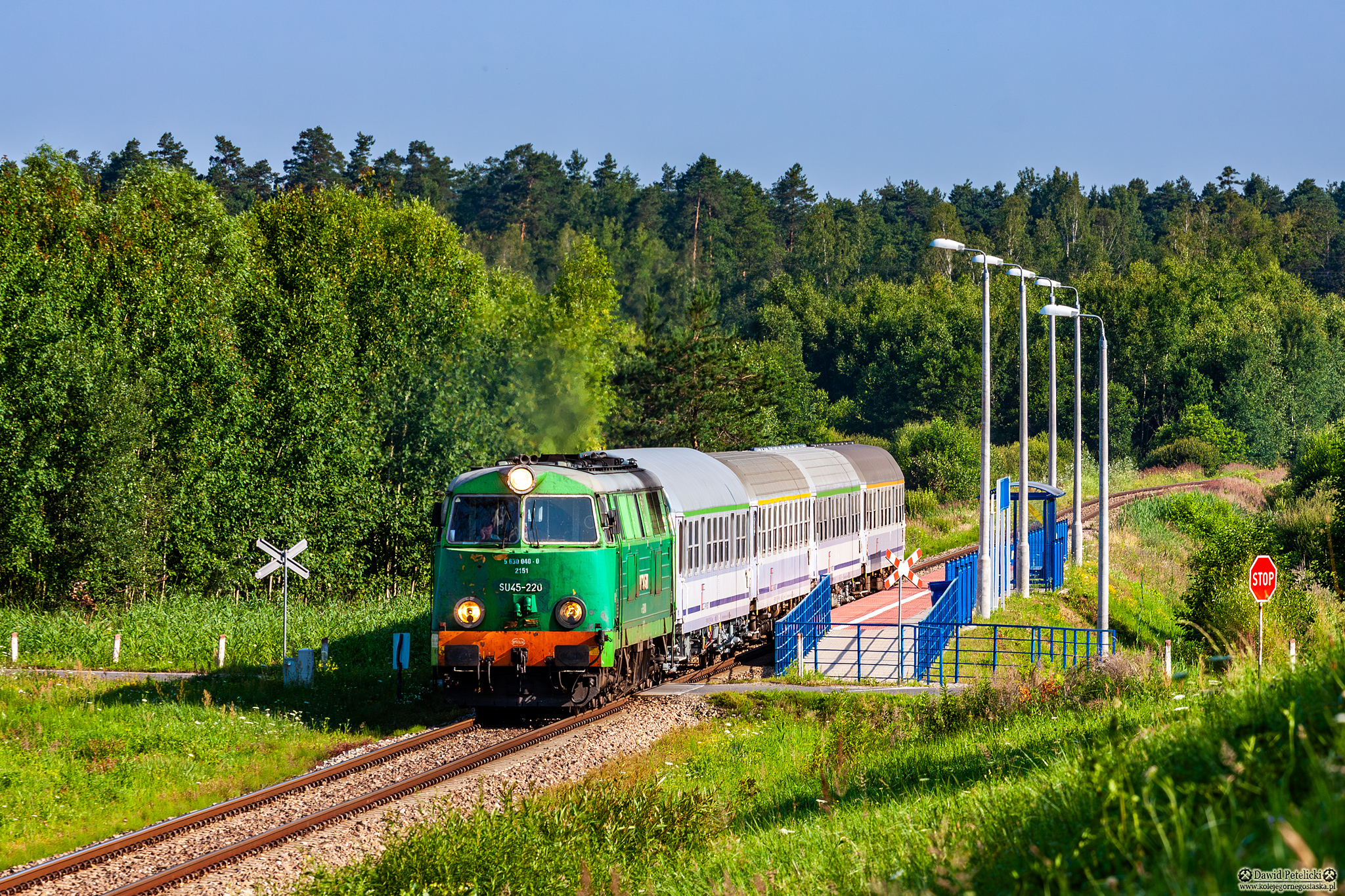 ||Szlak Dęba Rozalin - Kolbuszowa|| SU45-220 z pociągiem TLK 23104 HETMAN relacji Zamość - Kraków Główny mija na biegu przystanek osobowy Komorów Podmurynia.