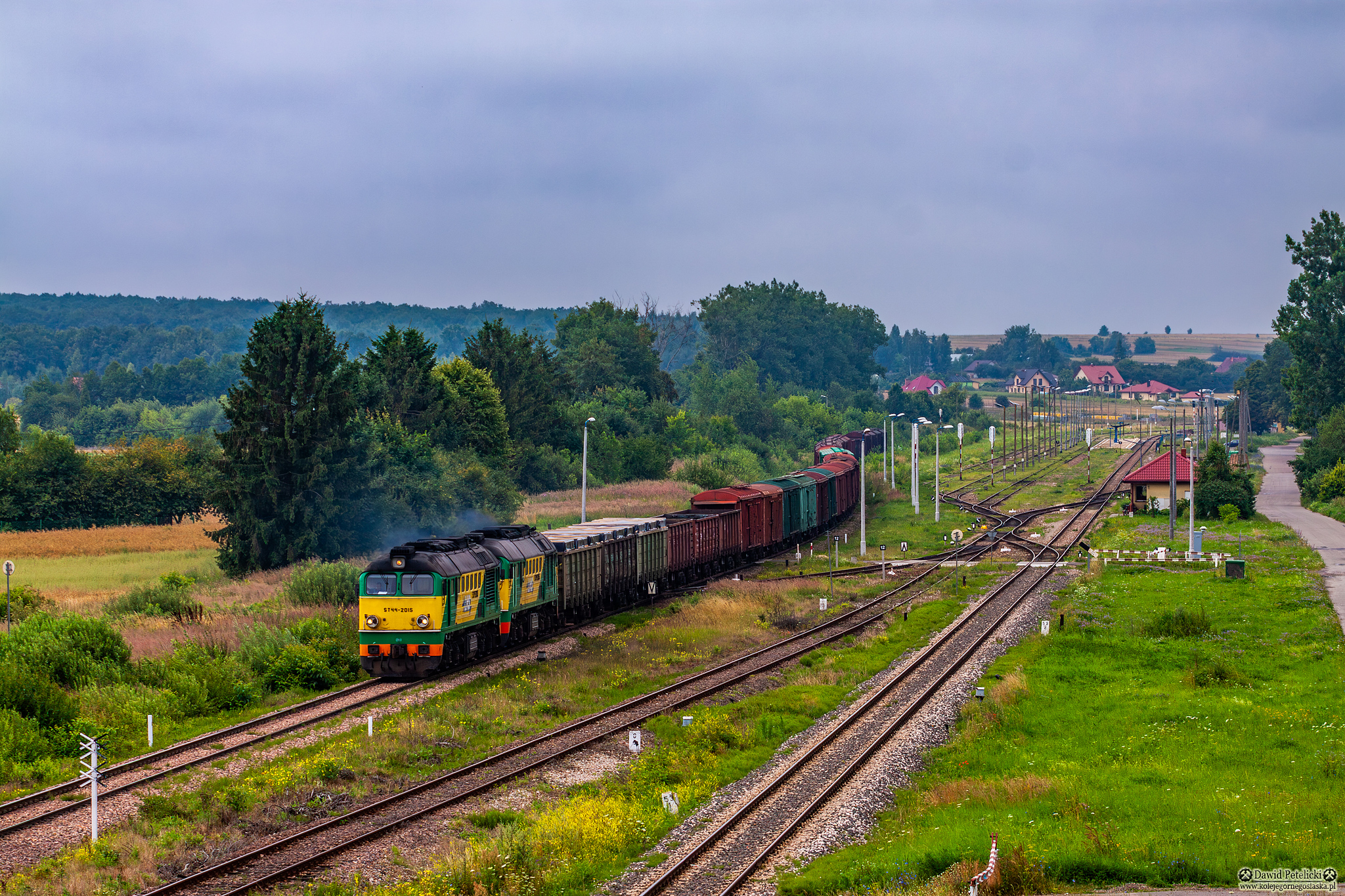 ||Szlak Szczebrzeszyn LHS - Zamość Bortatycze LHS|| Tandem ST44-2015 i ST44-2055 ciągnie mieszany skład towarowy w kierunku ukraińskiej granicy.