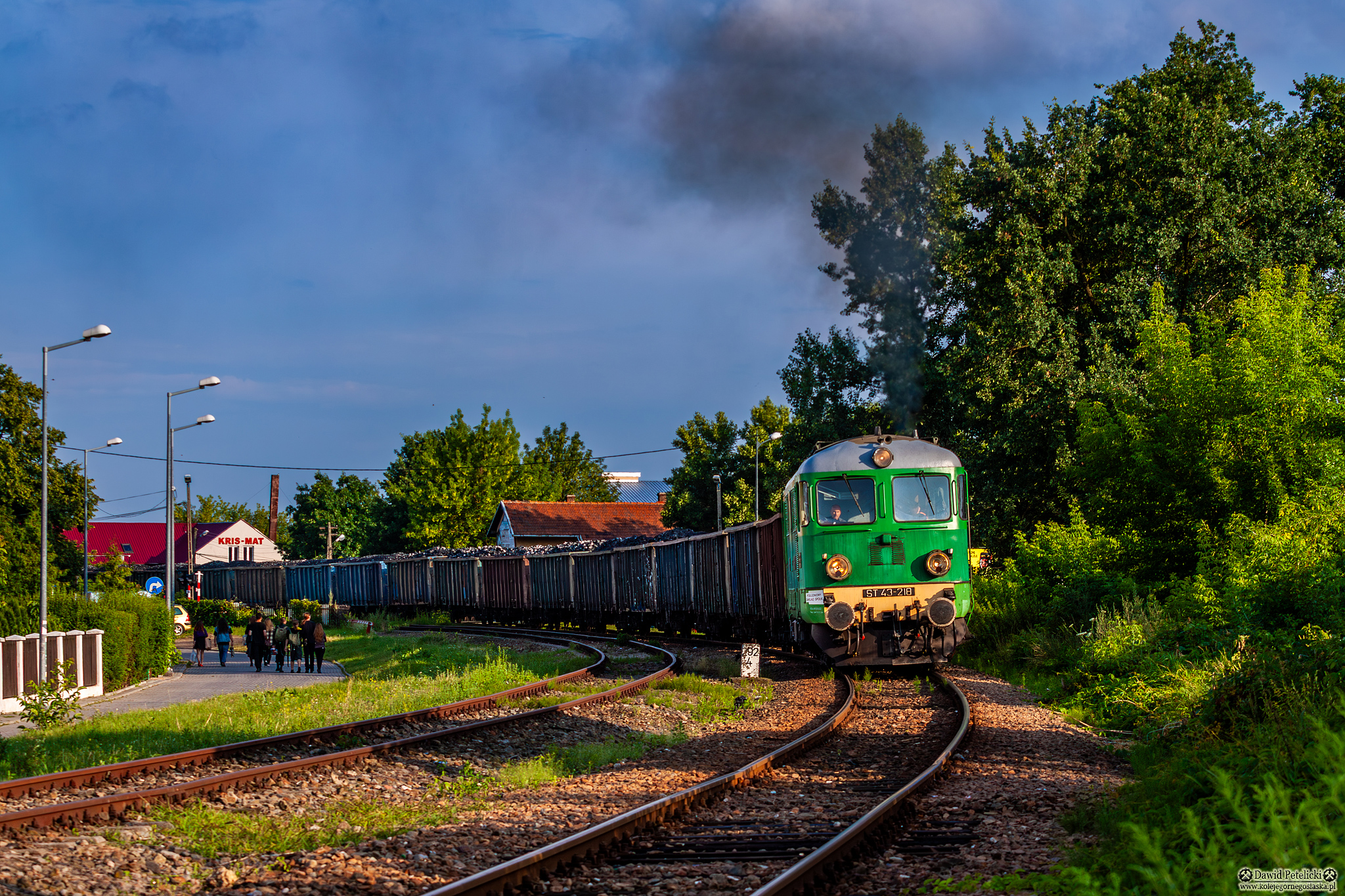 ||Szlak Rzochów - Mielec|| ST43-218 wciąga skład węglarek dla lokalnego składu węgla.