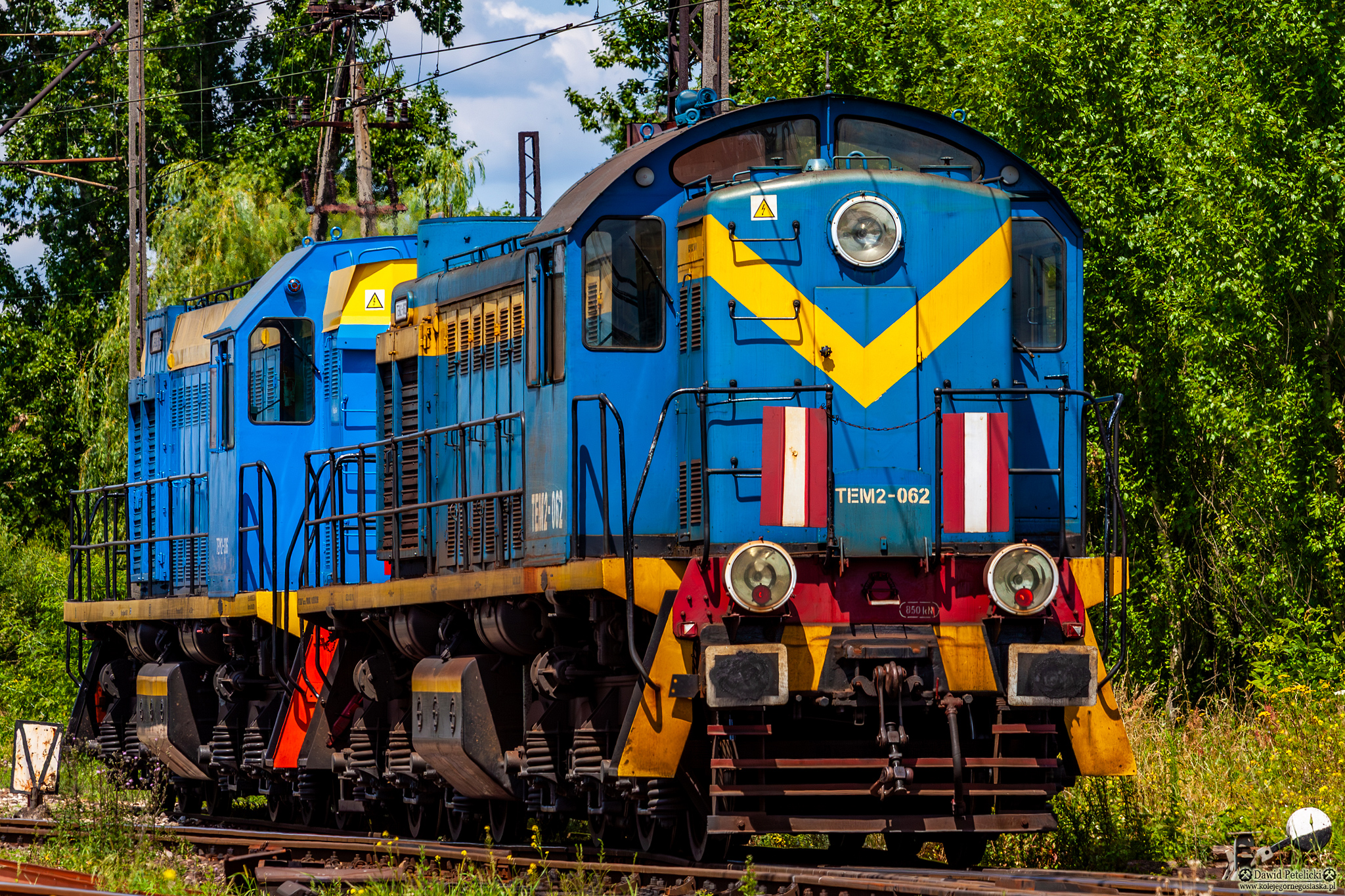 CELSA Huta Ostrowiec niebieskie + żółty pas z V na czole Linia Kolejowa 25 świętokrzyskie lato tandem