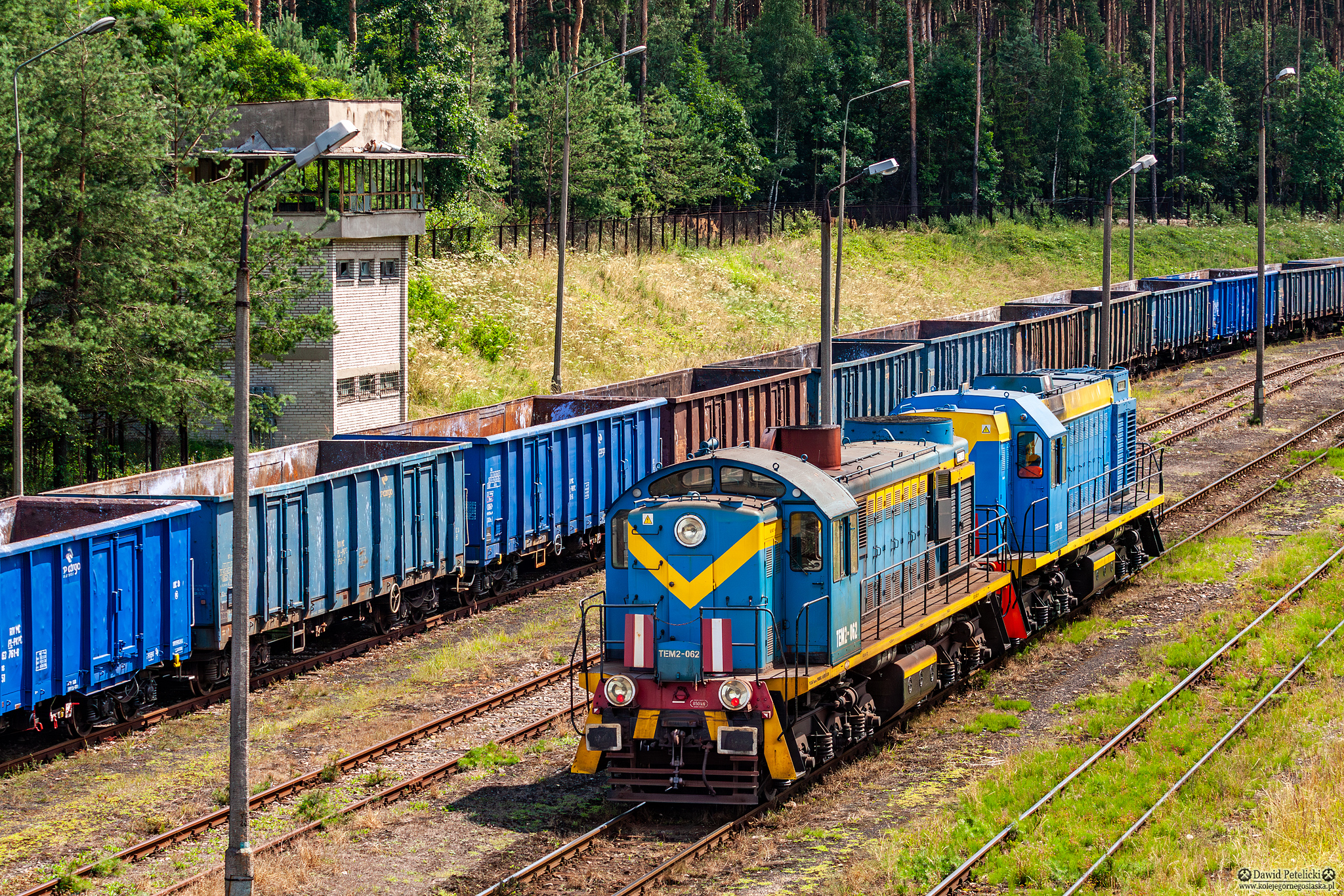 ||CELSA Huta Ostrowiec|| TEM2-062 razem z TEM2-306 wyjeżdżają z huty do stacji Bodzechów, aby zabrać ładowny skład węglarek ze złomem dla huty.