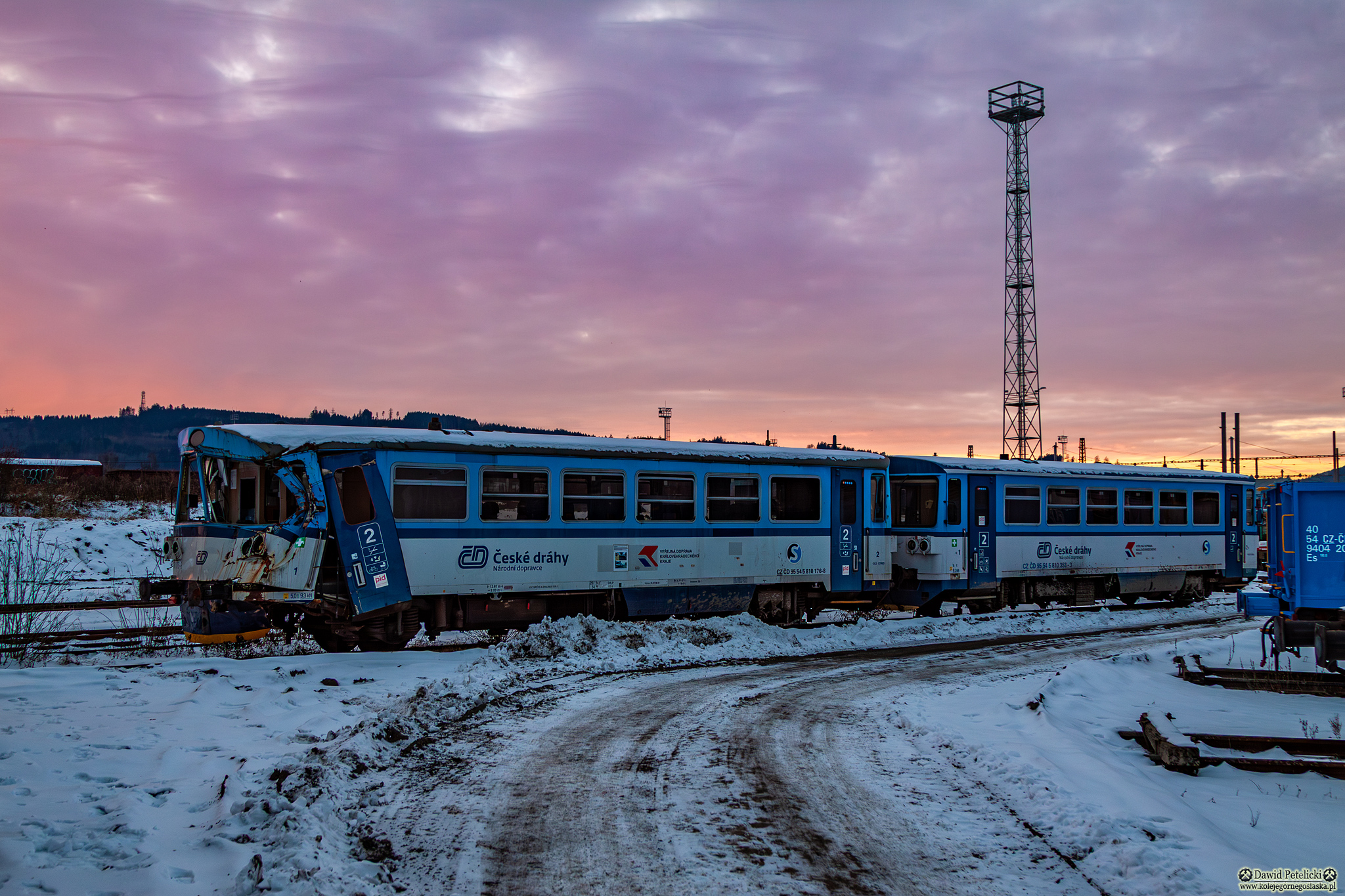 ||Česká Třebová|| 810 176-8 stoi odstawiony po wypadku obok lokomotywowni. Obok stoi 810 353-3.