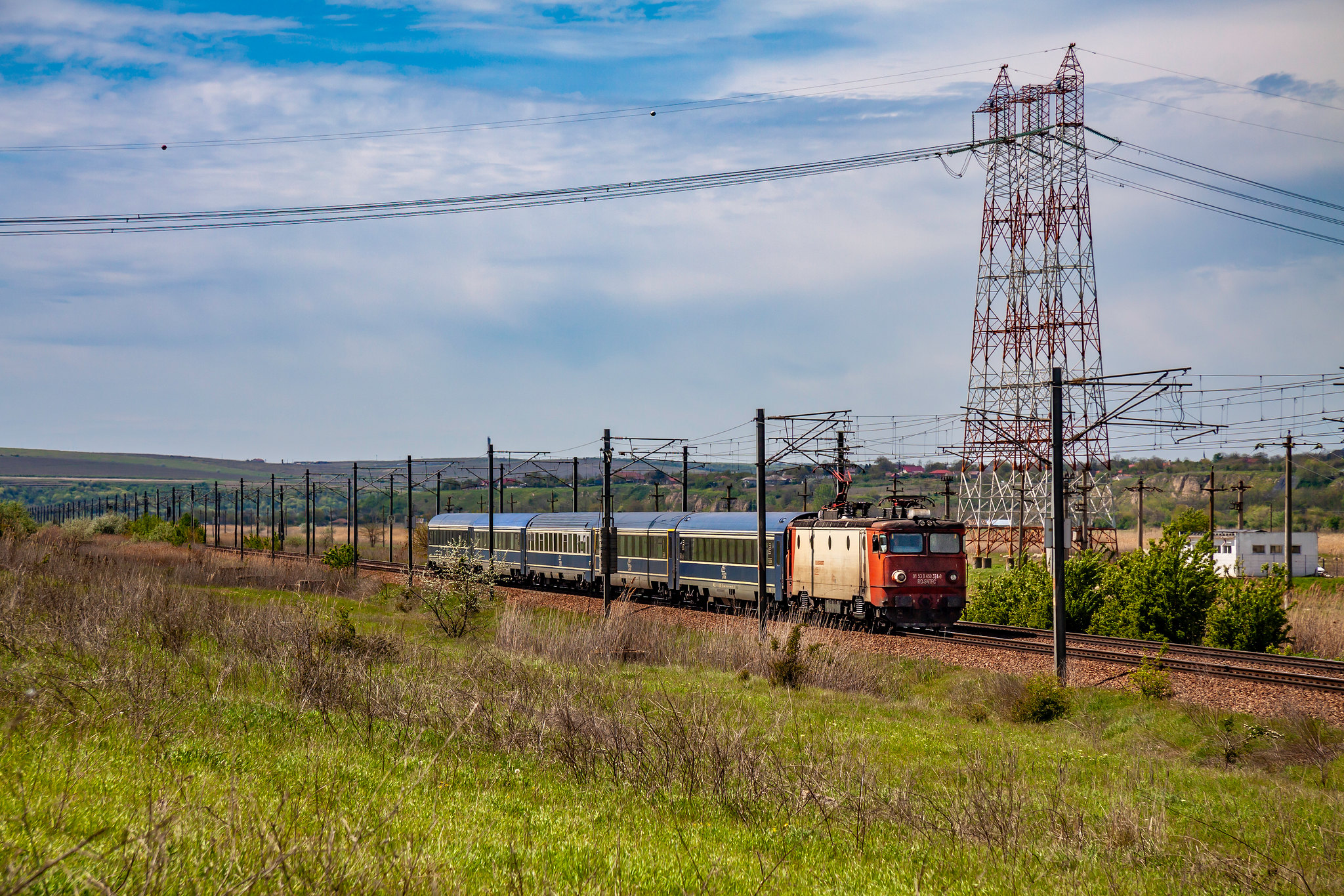 ||Szlak Saligny Grupa Est - Mircea Vodă|| 45-0374-0 z pociągiem IR 1883 relacji București Nord Gara - Constanța wzdłuż Kanału Morze Czarne - Dunaj.