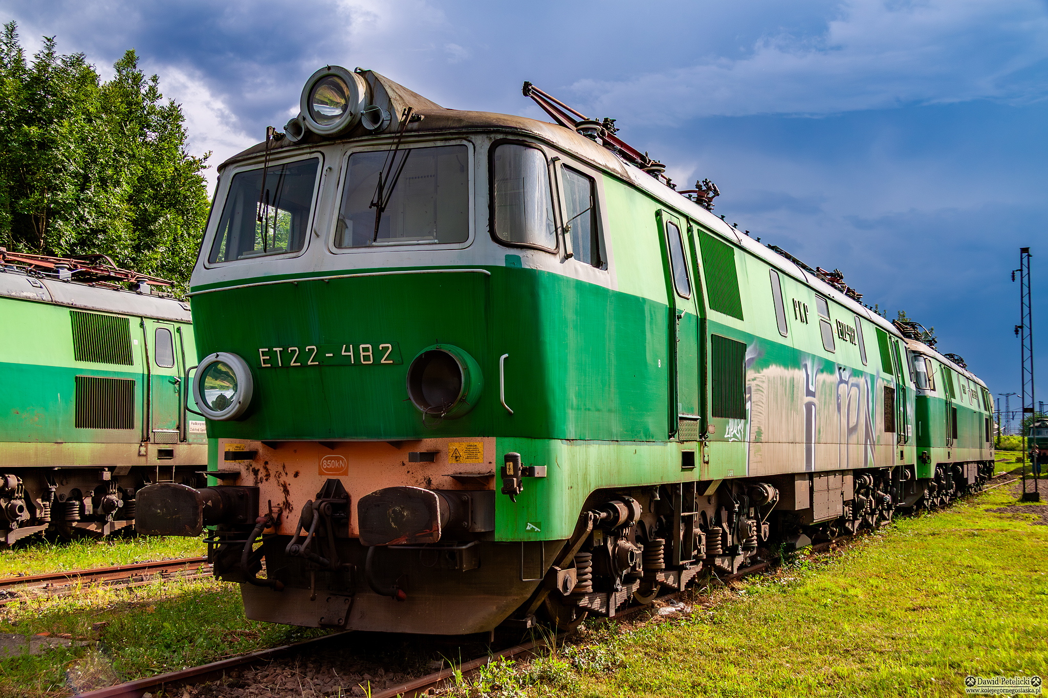 ||Dębica|| ET22-482 stoi odstawiony na terenie lokomotywowni Dębica.