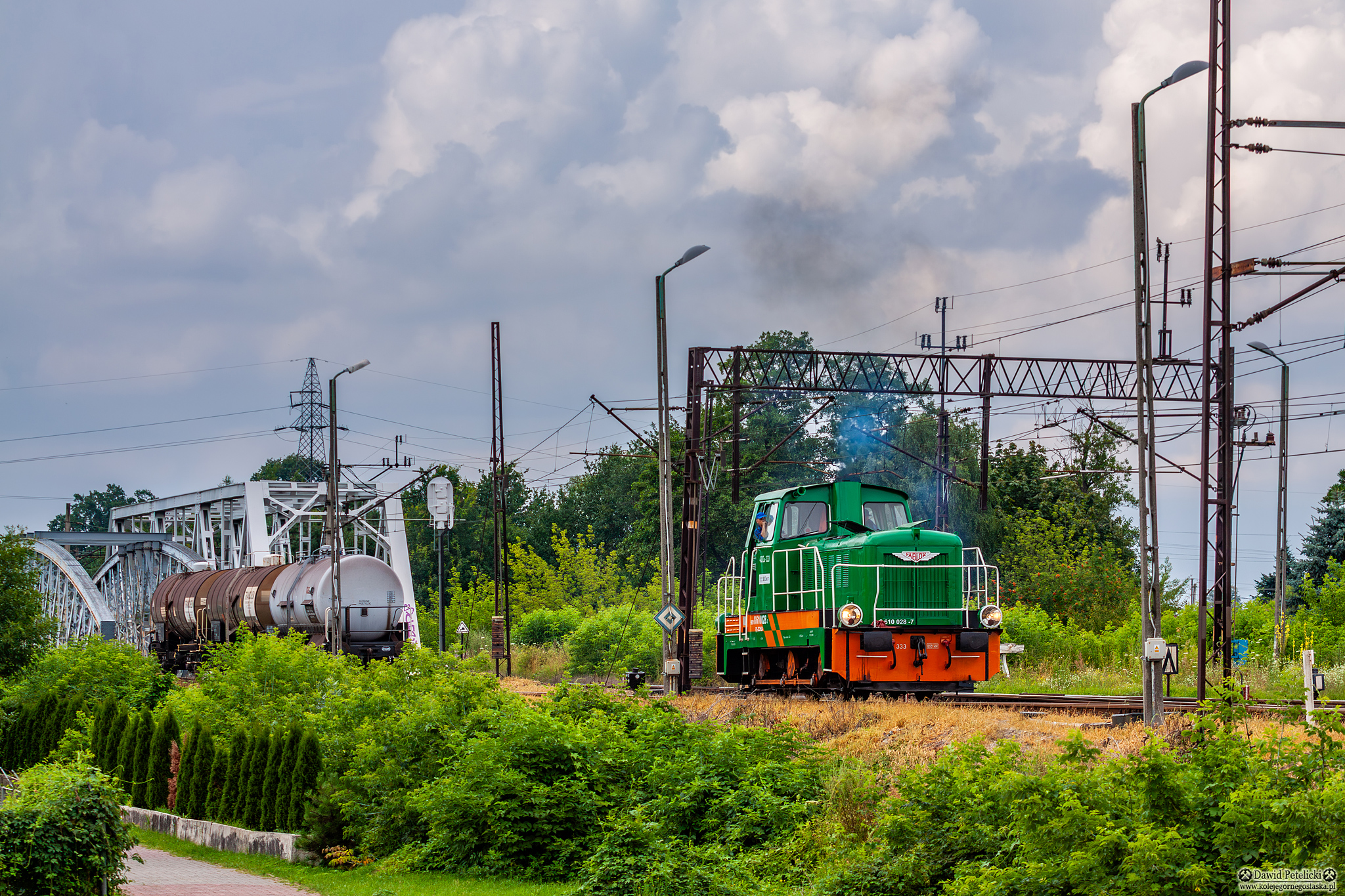 Zakłady Chemiczne Organika-Sarzyna zielone + pomarańczowe pasy [Lokomotiv] Linia Kolejowa 68 podkarpackie lato bocznica kolej przemysłowa most