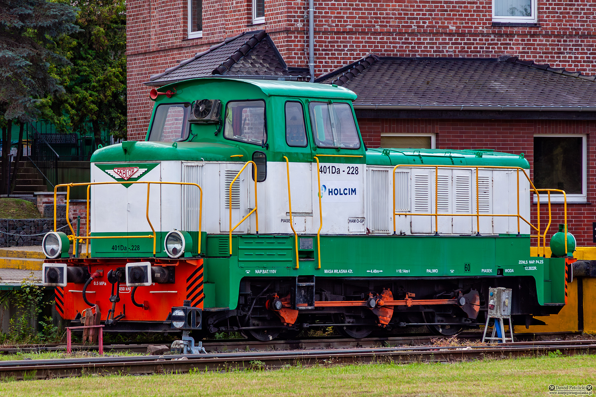 Holcim Kruszywa zielono - białe [Lafarge] Linia Kolejowa 290 dolnośląskie lato bocznica kolej przemysłowa portret