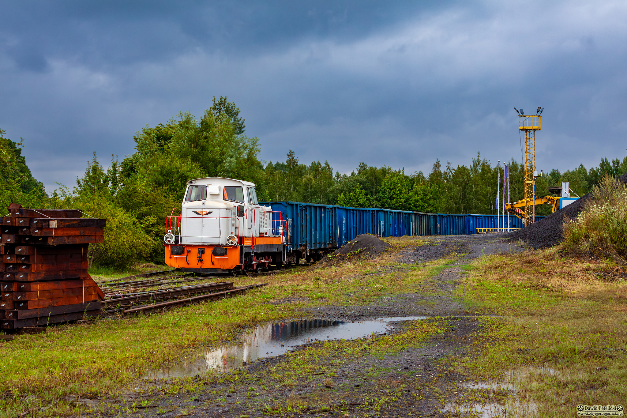 Eurovia Bazalty białe + pomarańczowo - czarny pas [Eurovia] Linia Kolejowa 274 dolnośląskie lato bocznica kolej przemysłowa