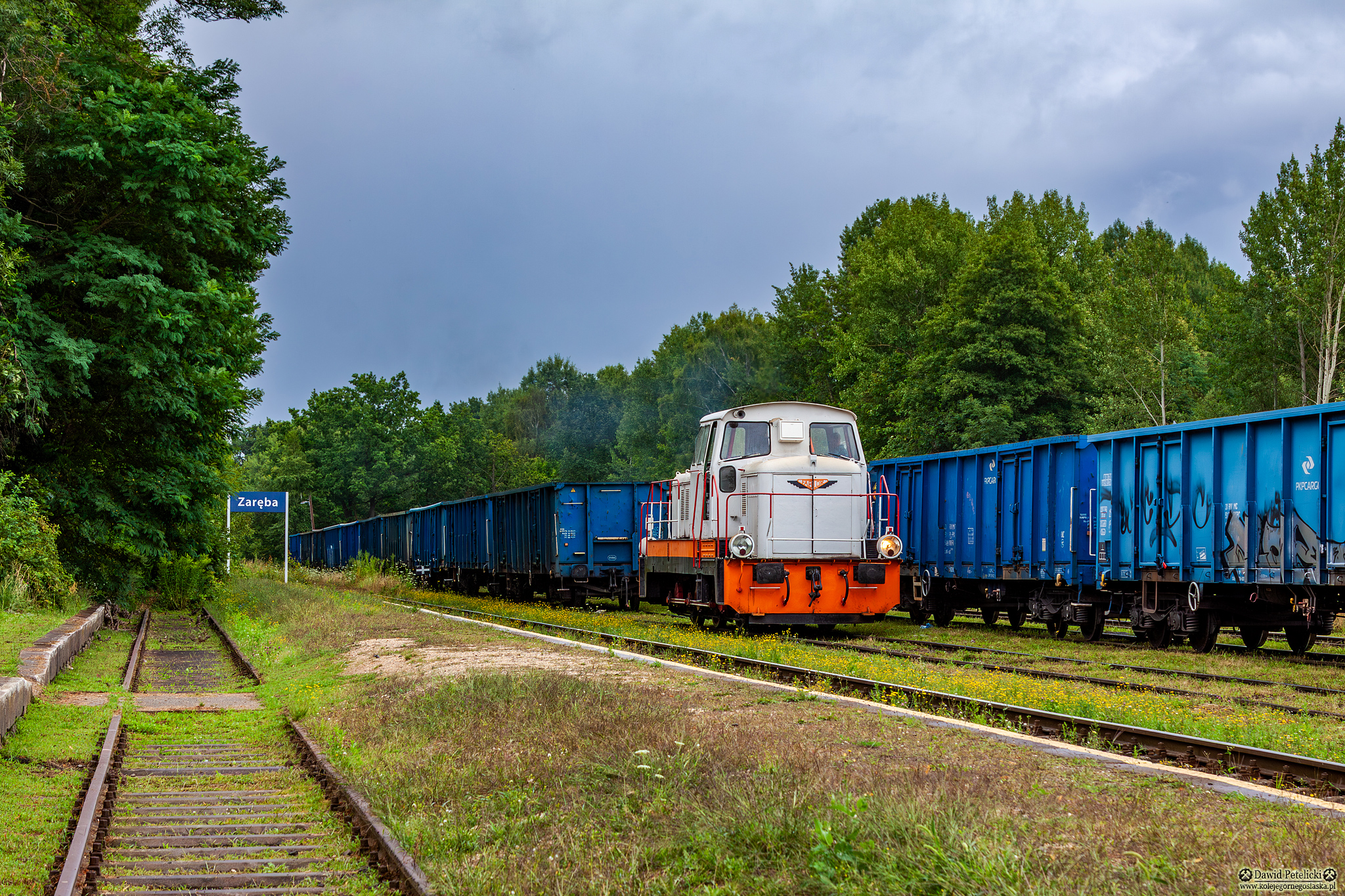 Eurovia Bazalty białe + pomarańczowo - czarny pas [Eurovia] Linia Kolejowa 274 dolnośląskie lato bocznica kolej przemysłowa