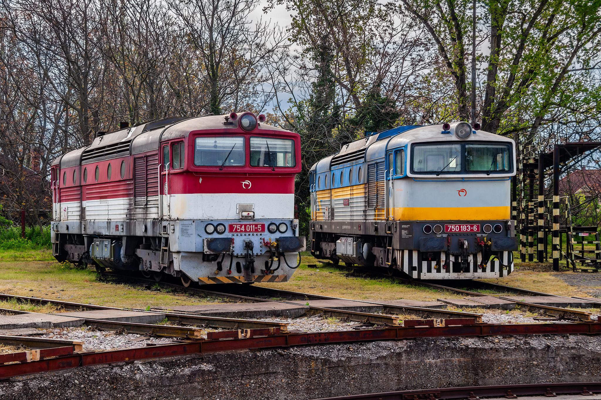 ||Nové Zámky|| 754 011-5 razem z 750 183-6 stoją na terenie lokomotywowni.