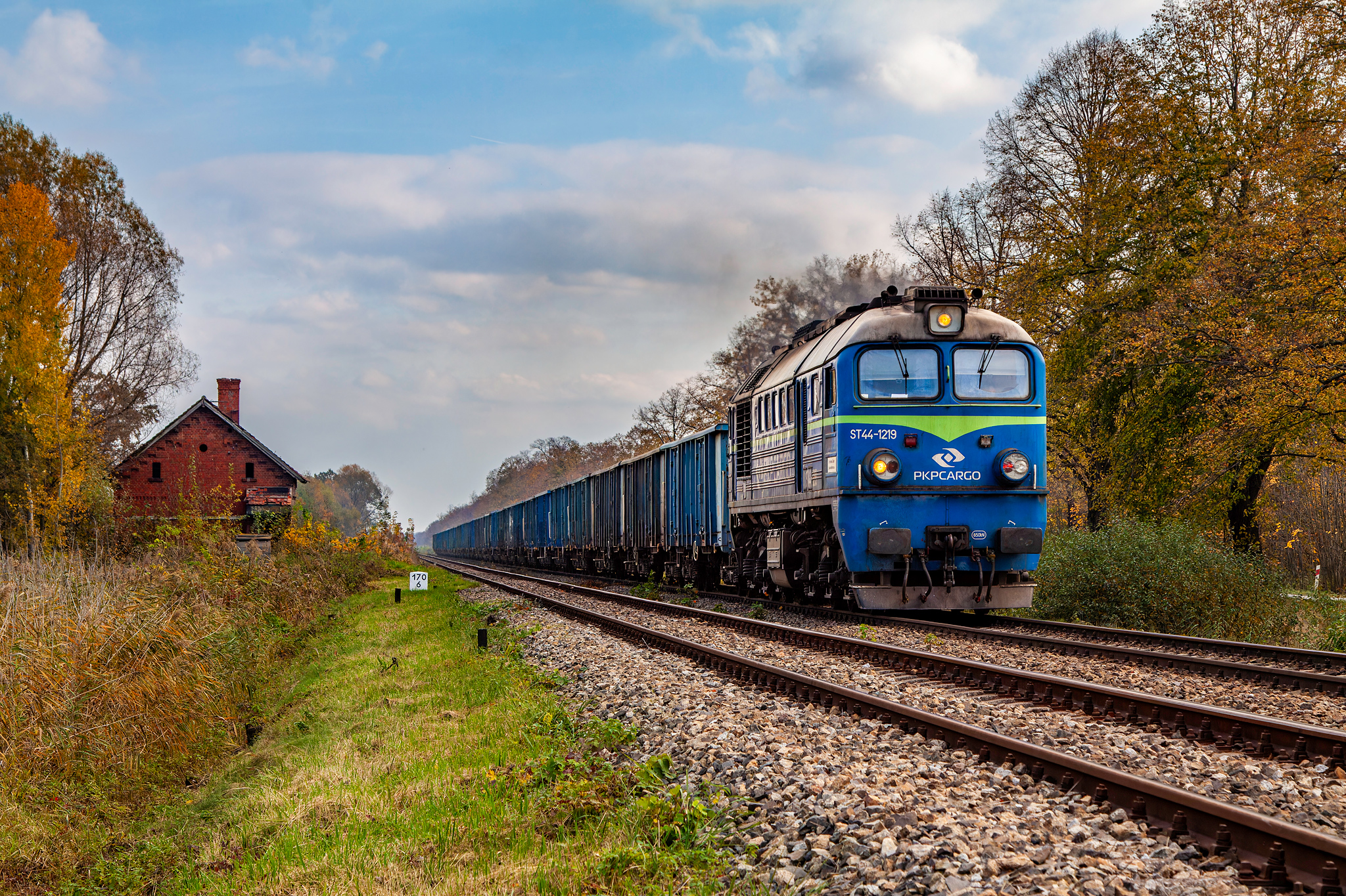 ||Szlak Paczków - Kamieniec Ząbkowicki|| ST44-1219 ciągnie próżny skład węglarek.
