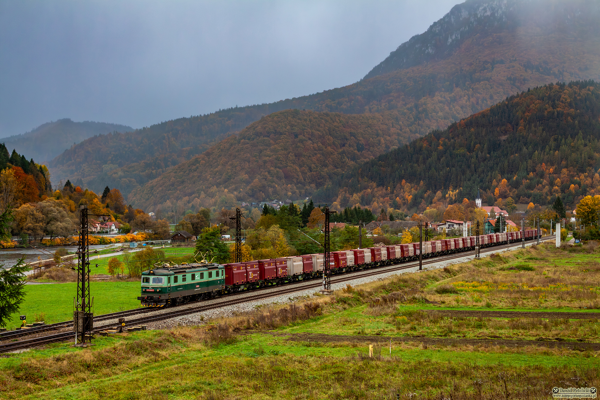 ZSSK Cargo seledynowo - ciemno zielone + szary pas + srebrny pas Linia Kolejowa SK 105A 183.004 Słowacja jesień towarowy kontenery
