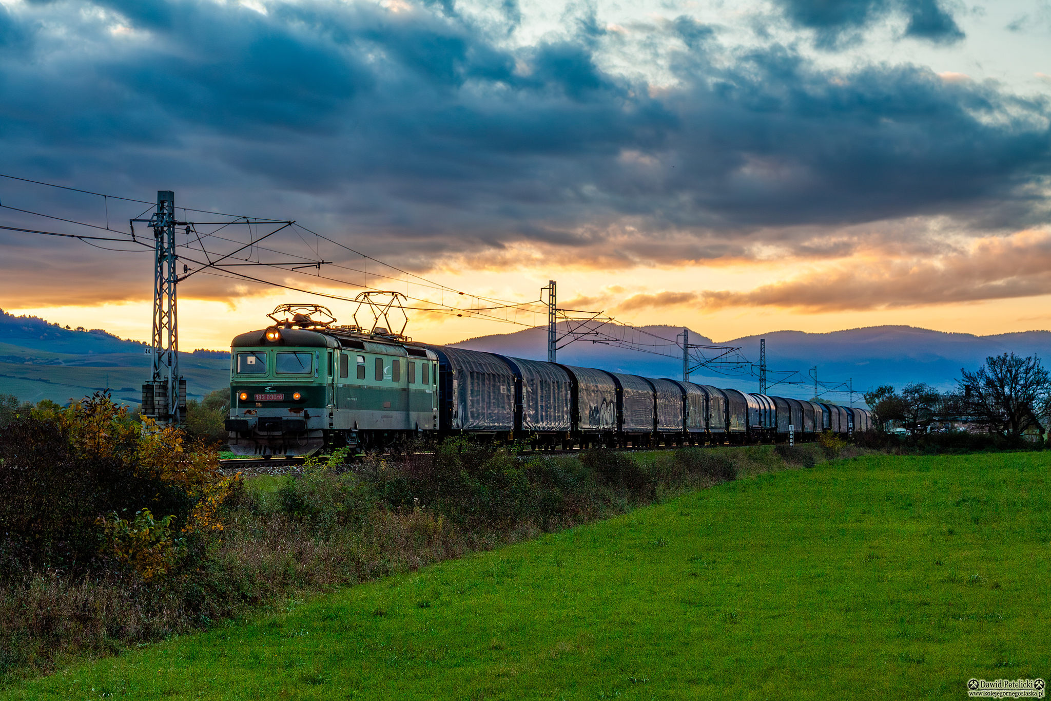 ZSSK Cargo seledynowo - ciemno zielone + szary pas + srebrny pas Linia Kolejowa SK 107A 183.030 Słowacja jesień towarowy kryte zachód słońca