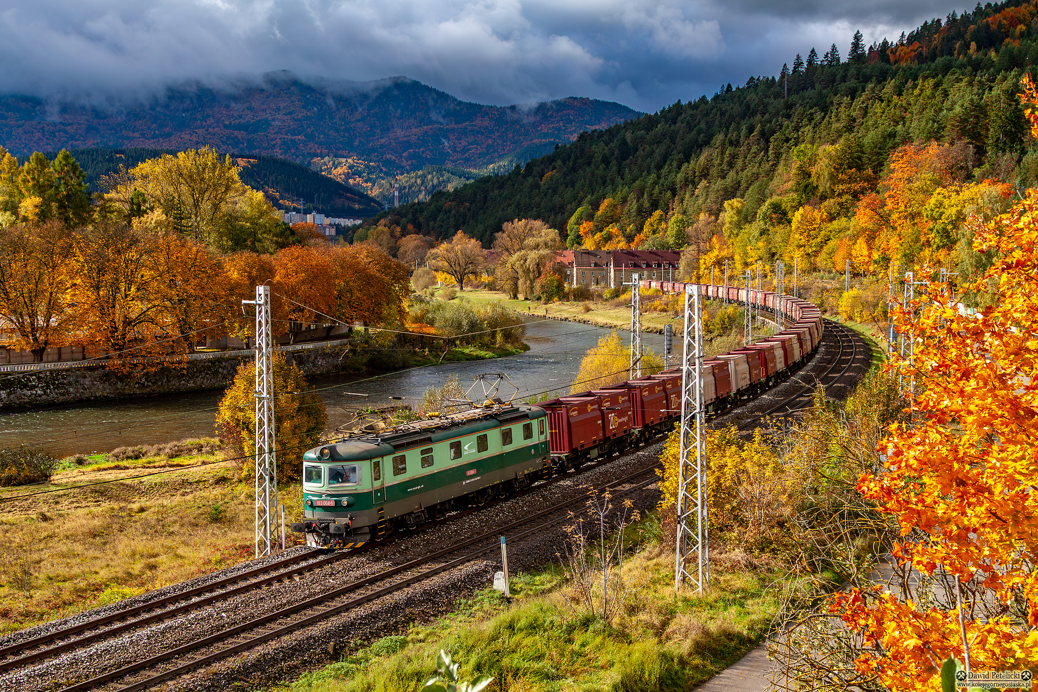 ZSSK Cargo seledynowo - ciemno zielone + szary pas + srebrny pas Linia Kolejowa SK 105A 183.004 Słowacja jesień towarowy kontenery