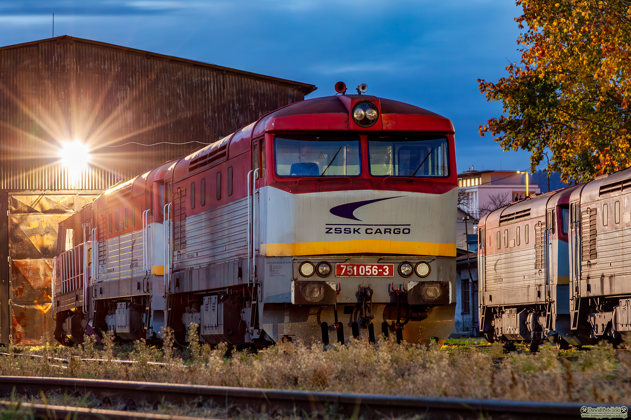 ||Prešov|| 751 056-3 stoi przed halą nieczynnej lokomotywowni. Z tyłu stoją 751.129 oraz 742.352.
