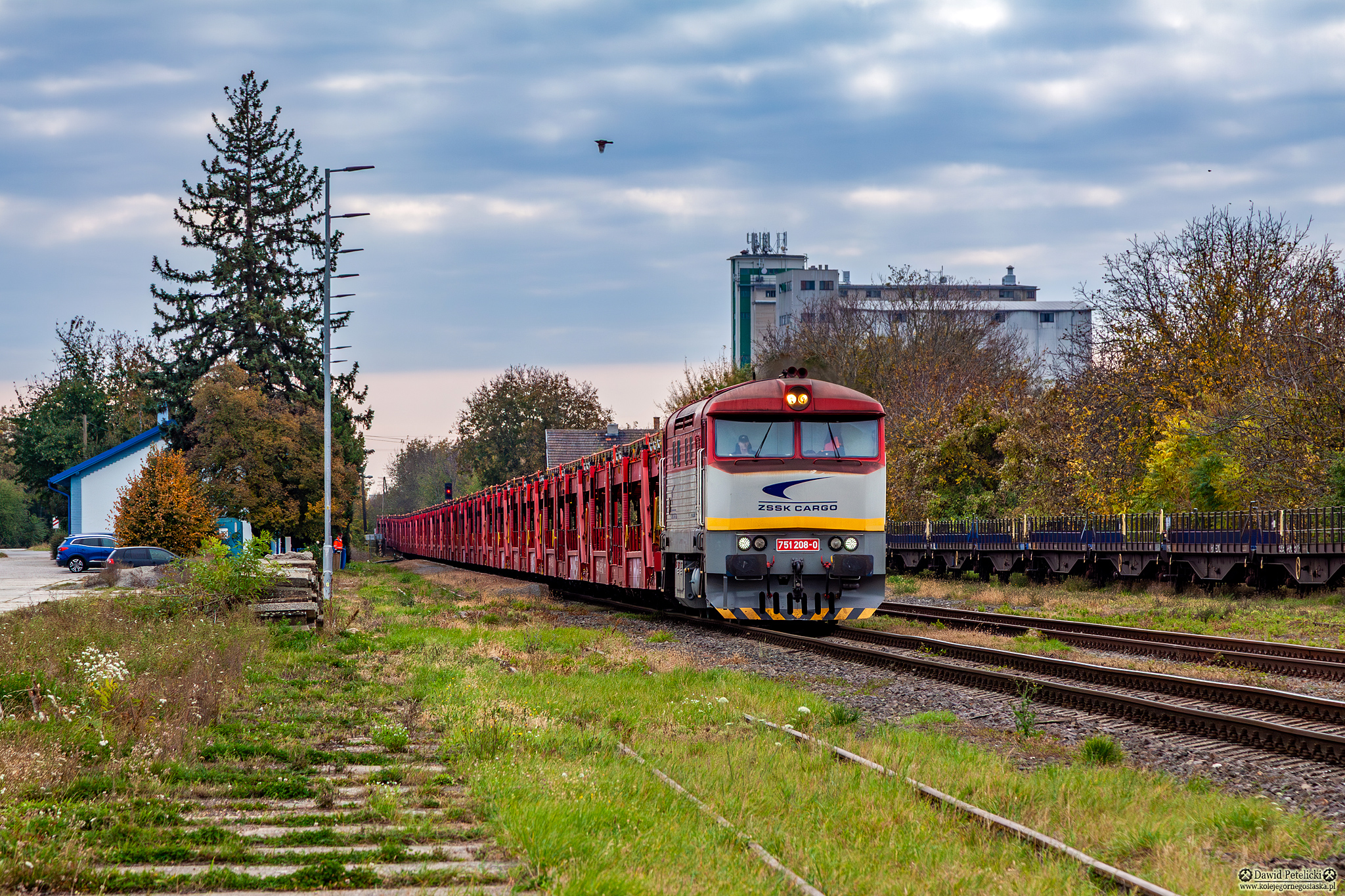 ||Ivanka pri Nitre|| 751 208-0 ciągnie skład próżnych autolawet w kierunku Nitry.