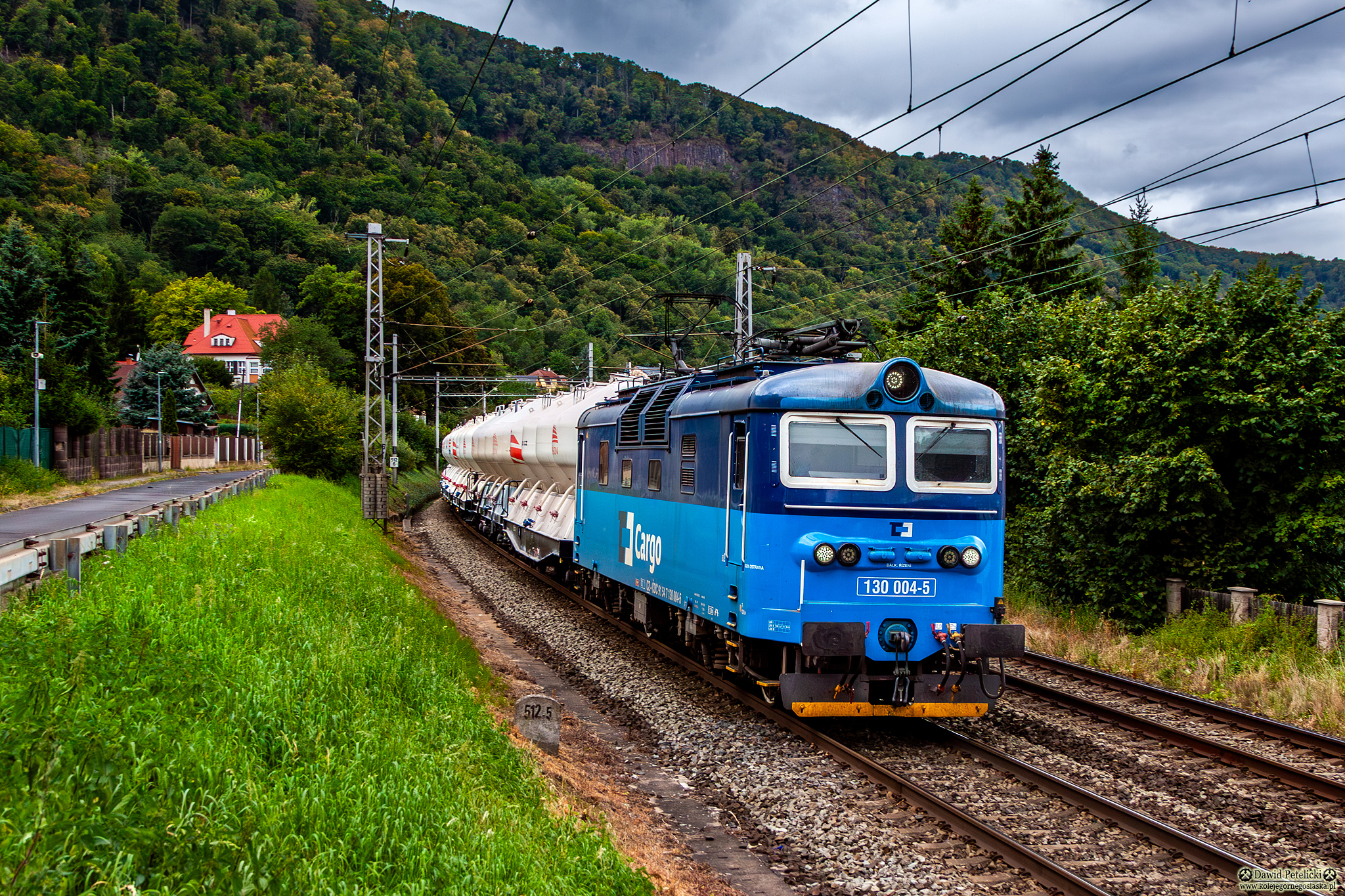 ||Szlak Ústí nad Labem hl.n. - Prackovice nad Labem|| 130 004-5 ciągnie skład gruszek w kierunku Lovosic.