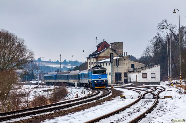 ||Bransouze|| 754 016-4 ciągnie pociąg R 658 Rožmberk relacji Brno hl.n. - České Budějovice.