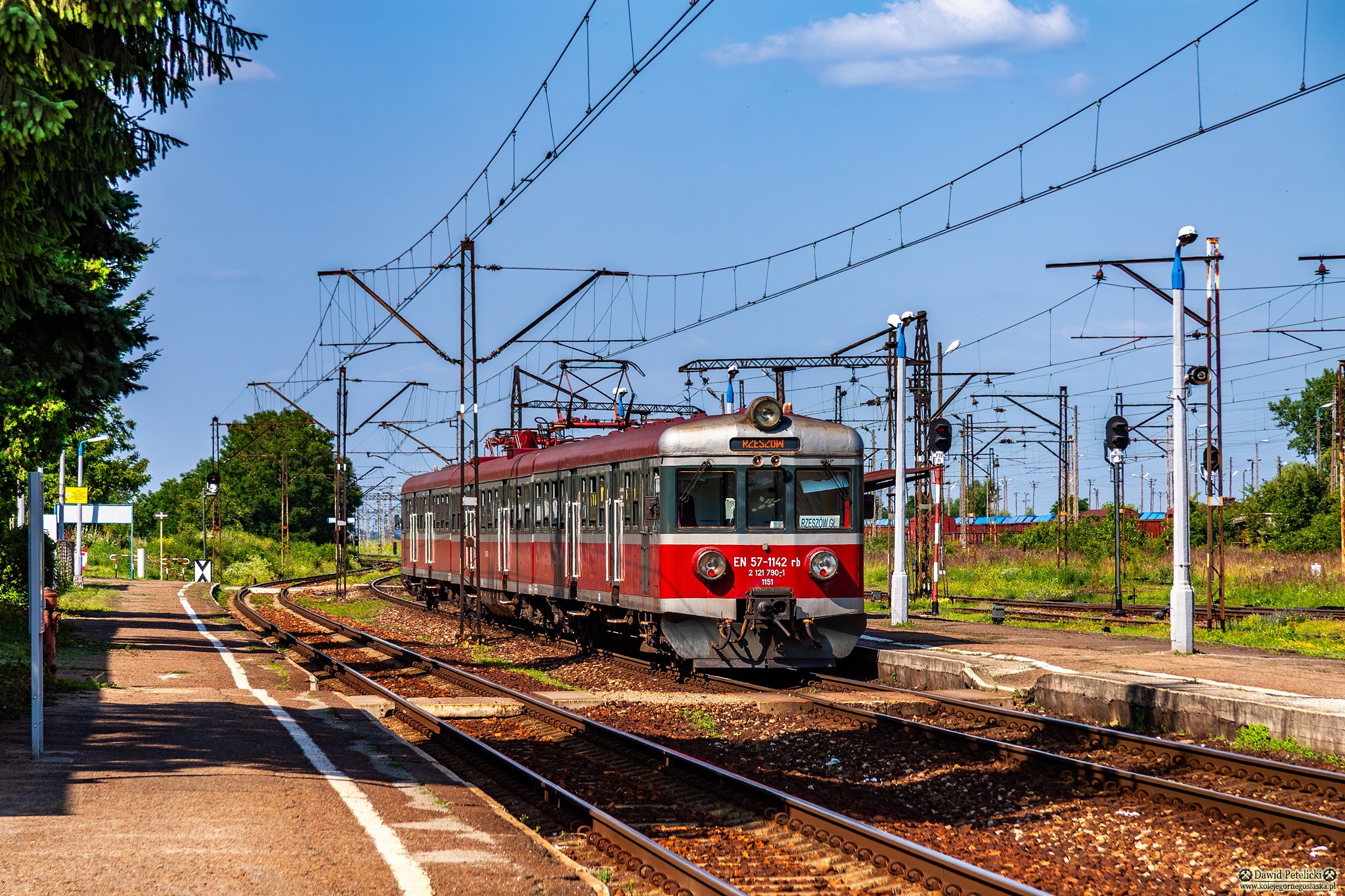 ||Żurawica Rozrządowa|| EN57-1142 opuszcza perony jako pociąg osobowy relacji Przemyśl Główny - Rzeszów Główny.