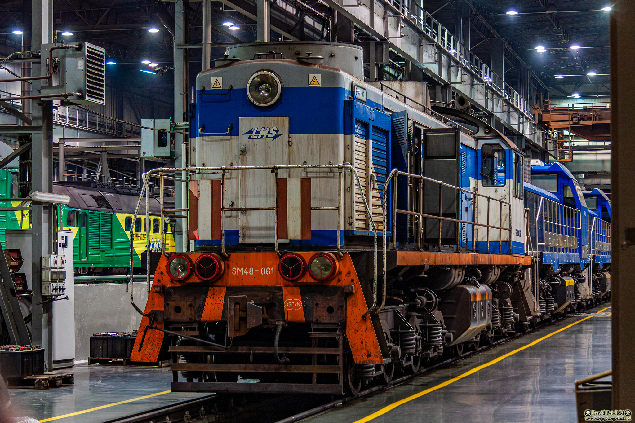 ||Zamość Bortatycze LHS|| SM48-061 stoi w hali lokomotywowni.