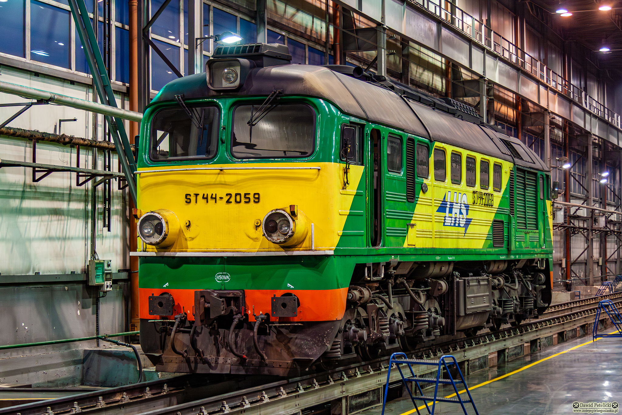 ||Zamość Bortatycze LHS|| ST44-2059 stoi w hali lokomotywowni.