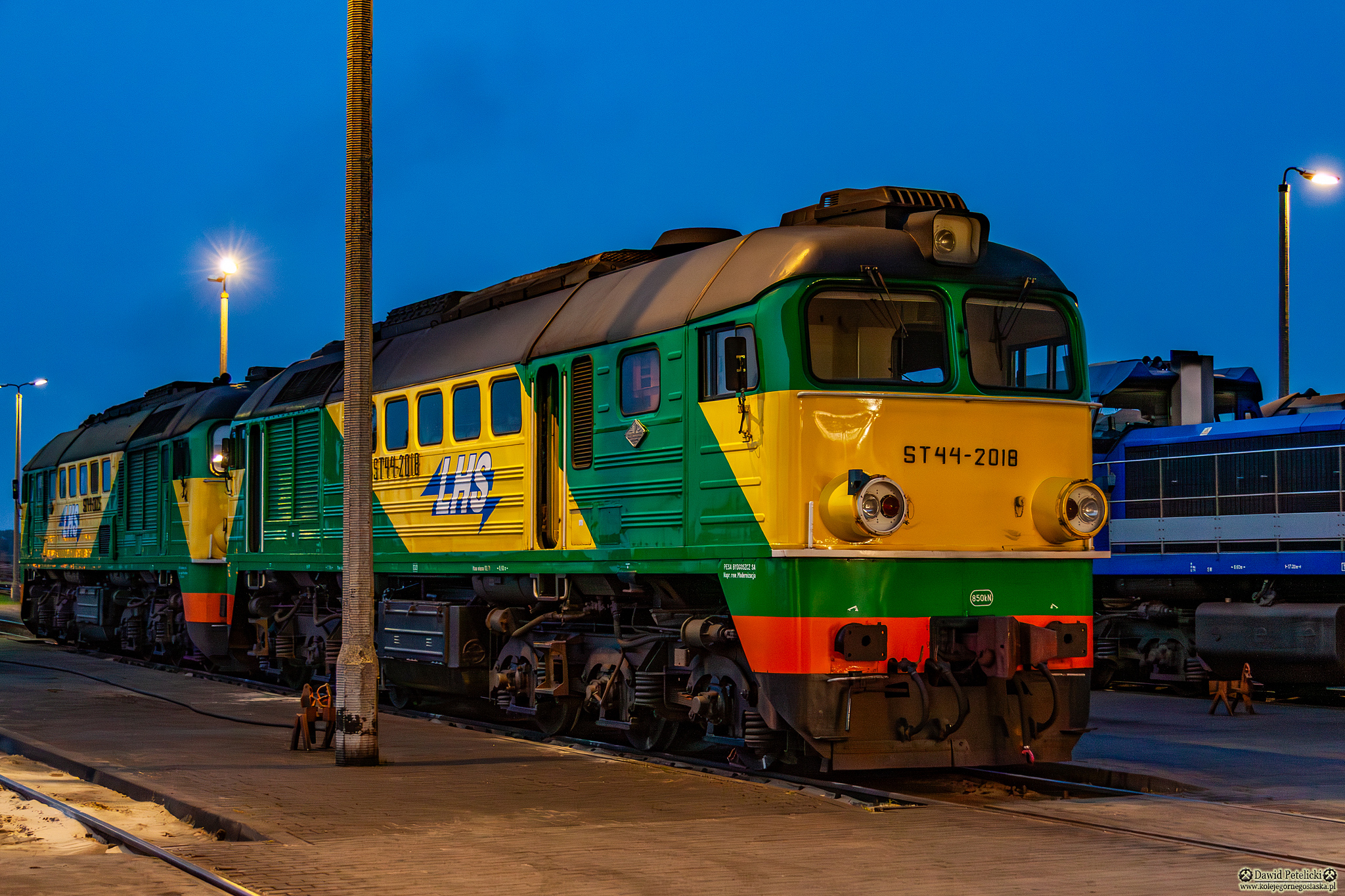 ||Zamość Bortatycze LHS|| ST44-2018 stoi przed halą lokomotywowni.