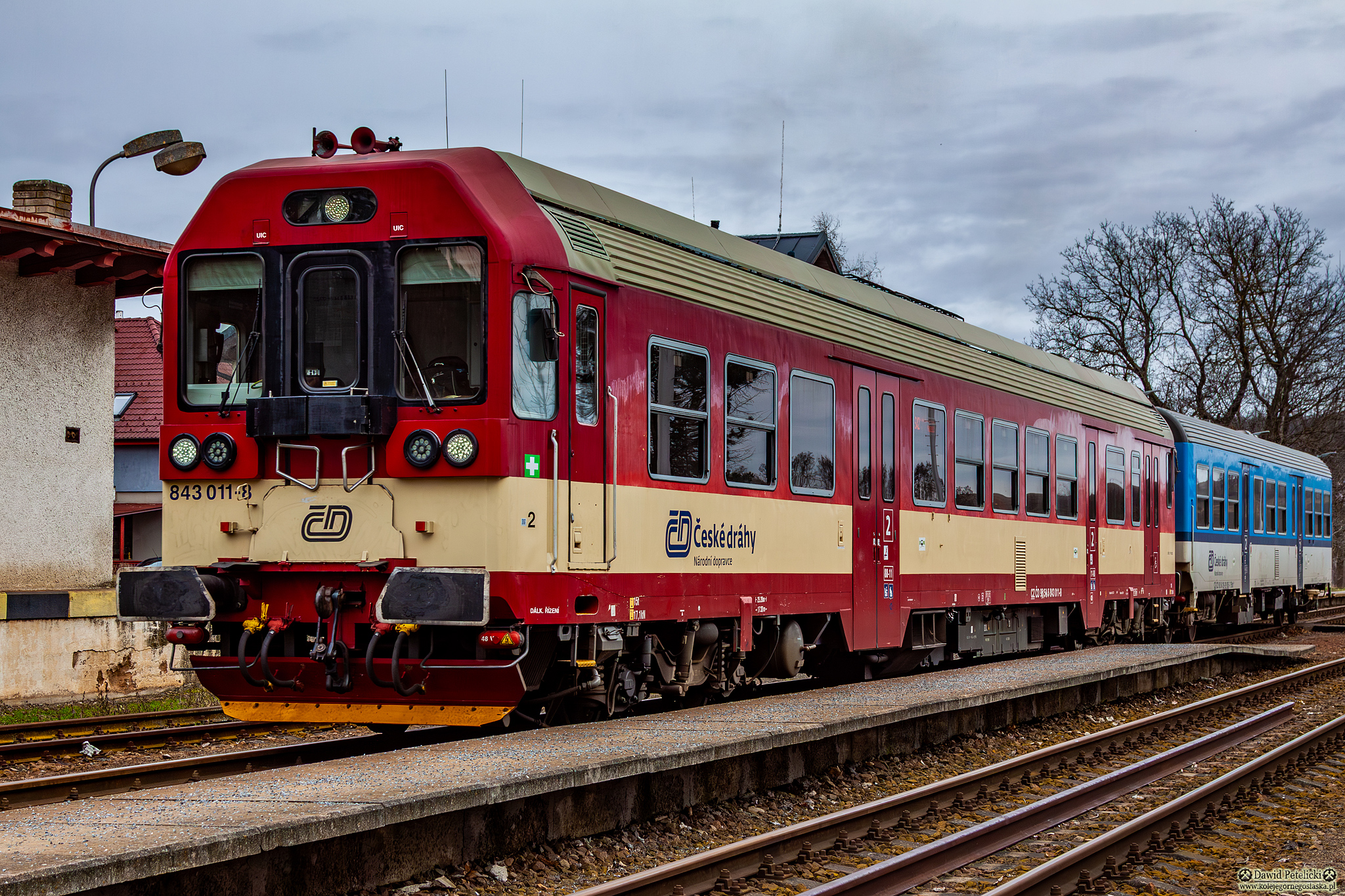||Kralice nad Oslavou|| 843 011-8 stoi w peronach jako pociąg osobowy Os 22816 relacji Zastávka u Brna - Třebíč.