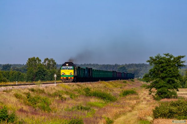 ||Szlak Drozdów LHS - Puszcza LHS|| ST44-2059 ciągnie skład próżnych węglarek w kierunku Zamo...