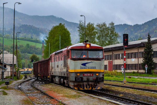 ||Oravský Podzámok|| 751 191-8 ciągnie krótką zdawkę do stacji Kraľovany.