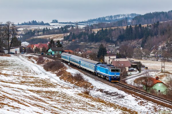 ||Bransouze|| 754 016-4 ciągnie pociąg R 658 Rožmberk relacji Brno hl.n. - České Budějovice.